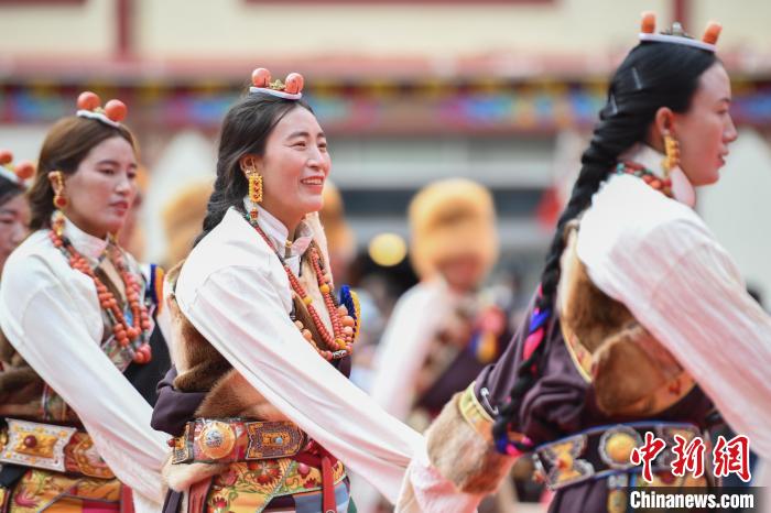 圖為昌都市民間鍋莊舞比賽現(xiàn)場(chǎng)。貢嘎來(lái)松 攝