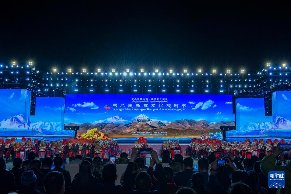 第八屆象雄文化旅游節(jié)開幕式現(xiàn)場的文藝表演(8月21日攝)。新華社發(fā)(旦增努布攝)