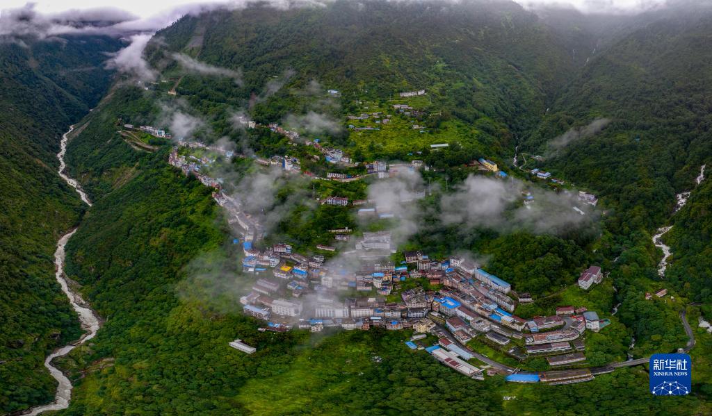 這是9月9日拍攝的西藏日喀則市聶拉木縣樟木鎮(zhèn)(無(wú)人機(jī)照片)。新華社記者 姜帆 攝