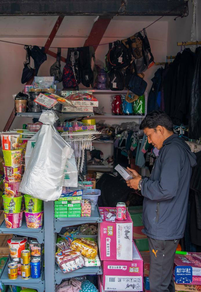 尼泊爾邊民在樟木口岸互市貿(mào)易市場(chǎng)選購(gòu)商品(9月9日攝)。新華社記者 姜帆 攝