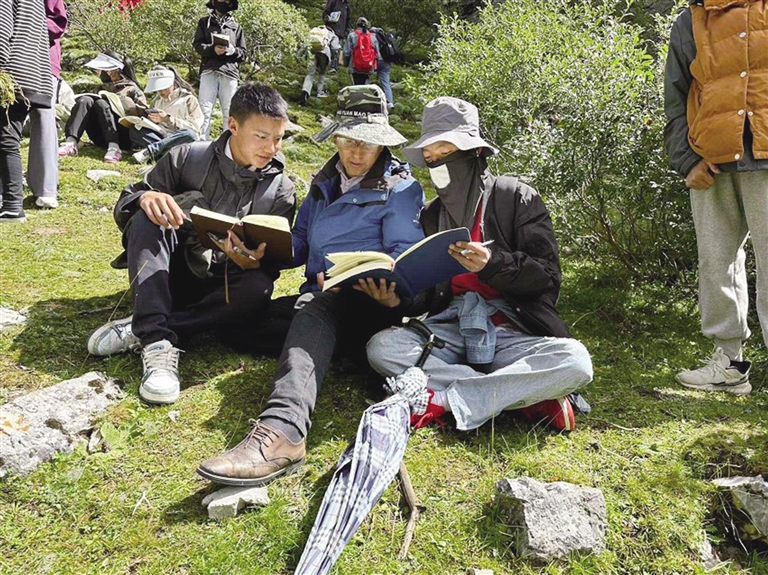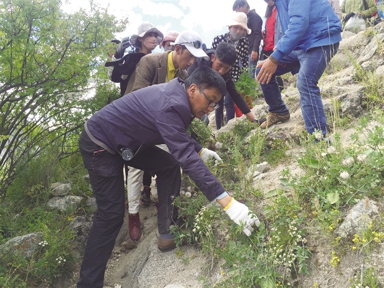 洛桑尼瑪帶領(lǐng)學(xué)生上山采藥識藥。圖由洛桑尼瑪提供