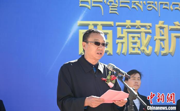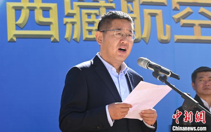 圖為西藏航空副總經理張紅軍致辭。趙朗 攝