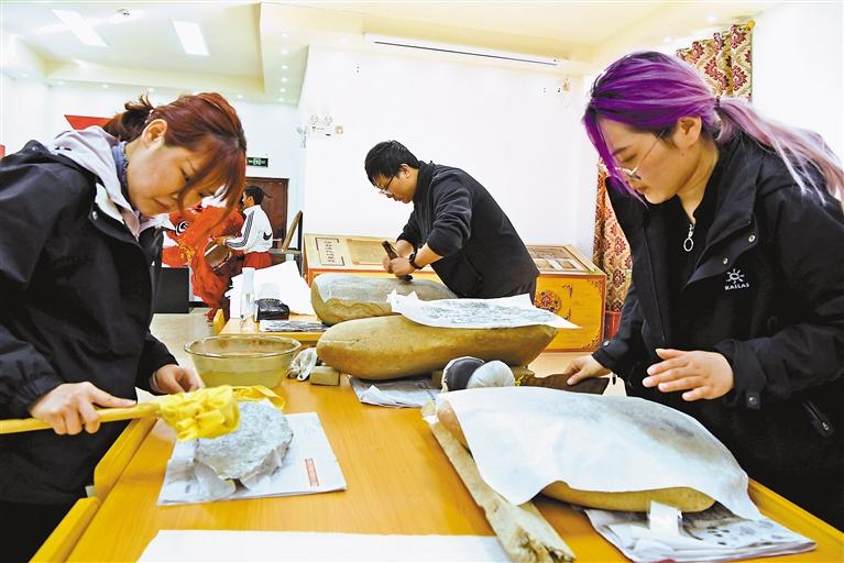 復(fù)旦大學(xué)圖書館中華古籍保護研究院師生在昌都市洛隆縣歷史文化陳列館內(nèi)拓印當(dāng)?shù)厥?。洛?攝
