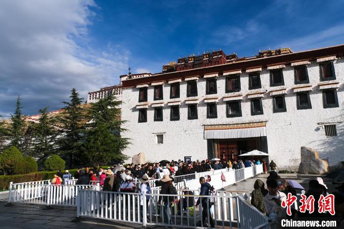 圖為9月30日上午,游客排隊(duì)進(jìn)入布達(dá)拉宮參觀。江飛波 攝