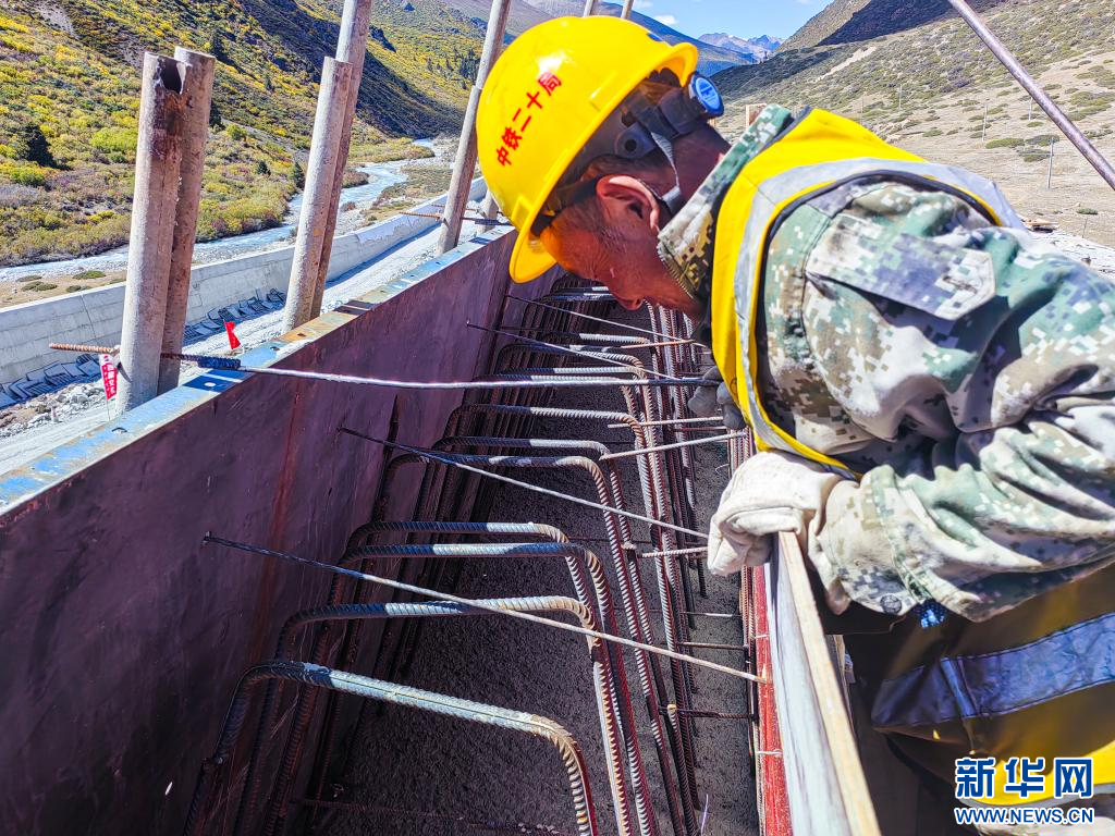 中鐵二十局建設(shè)者正在進(jìn)行然烏隧道鋼拱架加工 (受訪者供圖)
