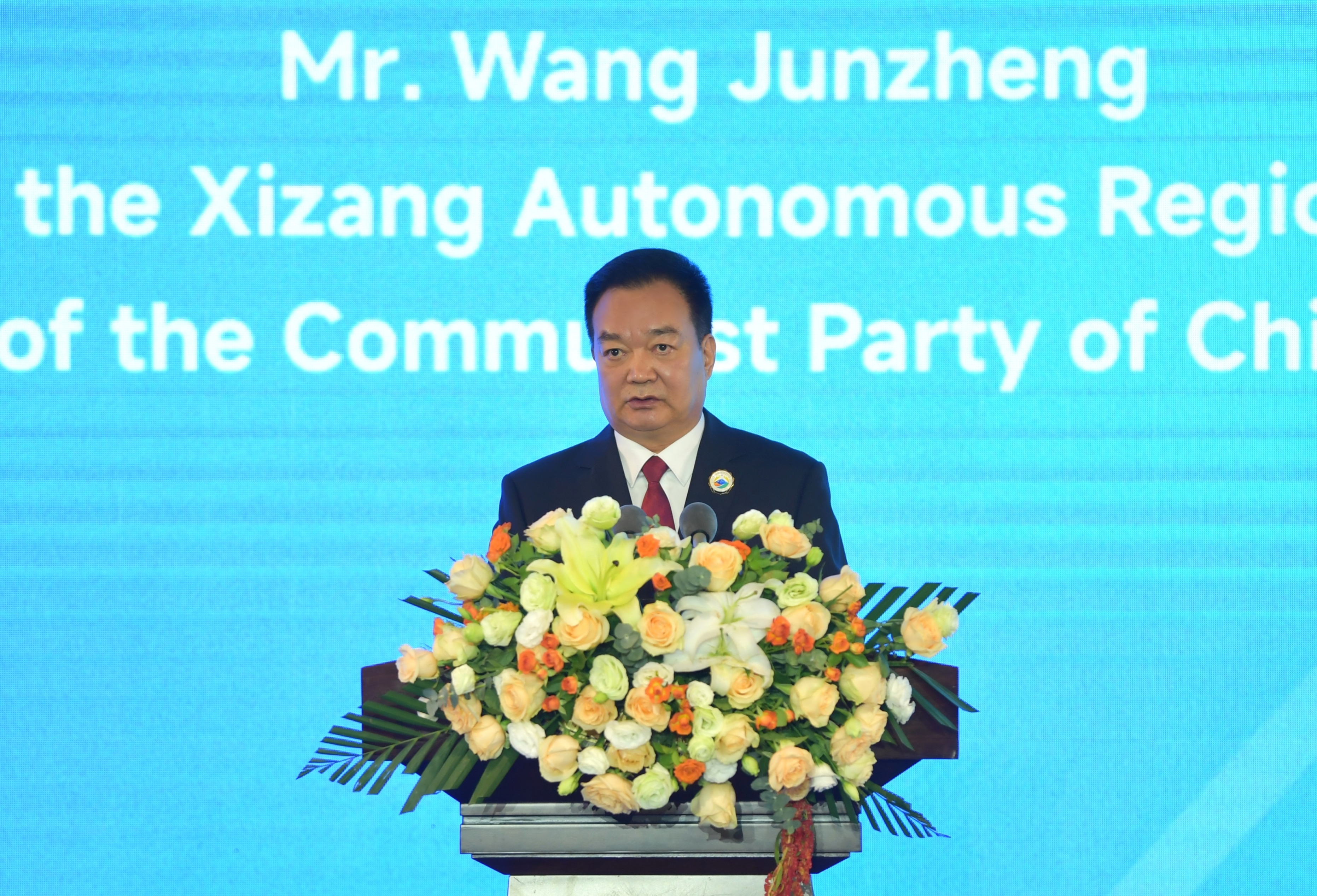 王君正代表自治區(qū)黨委、政府和全區(qū)各族人民,向出席中國(guó)西藏“環(huán)喜馬拉雅”國(guó)際合作論壇的中央和國(guó)家機(jī)關(guān)部委領(lǐng)導(dǎo)、各國(guó)政要、專家學(xué)者表示熱烈歡迎,向大家長(zhǎng)期以來(lái)對(duì)西藏經(jīng)濟(jì)社會(huì)各項(xiàng)事業(yè)發(fā)展的支持表示衷心感謝。