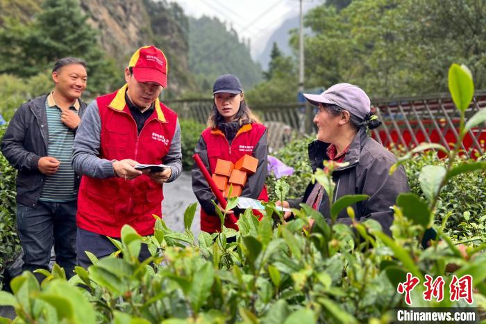 10月7日,國網(wǎng)山南供電公司服務(wù)隊(duì)在勒鄉(xiāng)茶田間開展供電宣傳工作。多吉次仁 攝