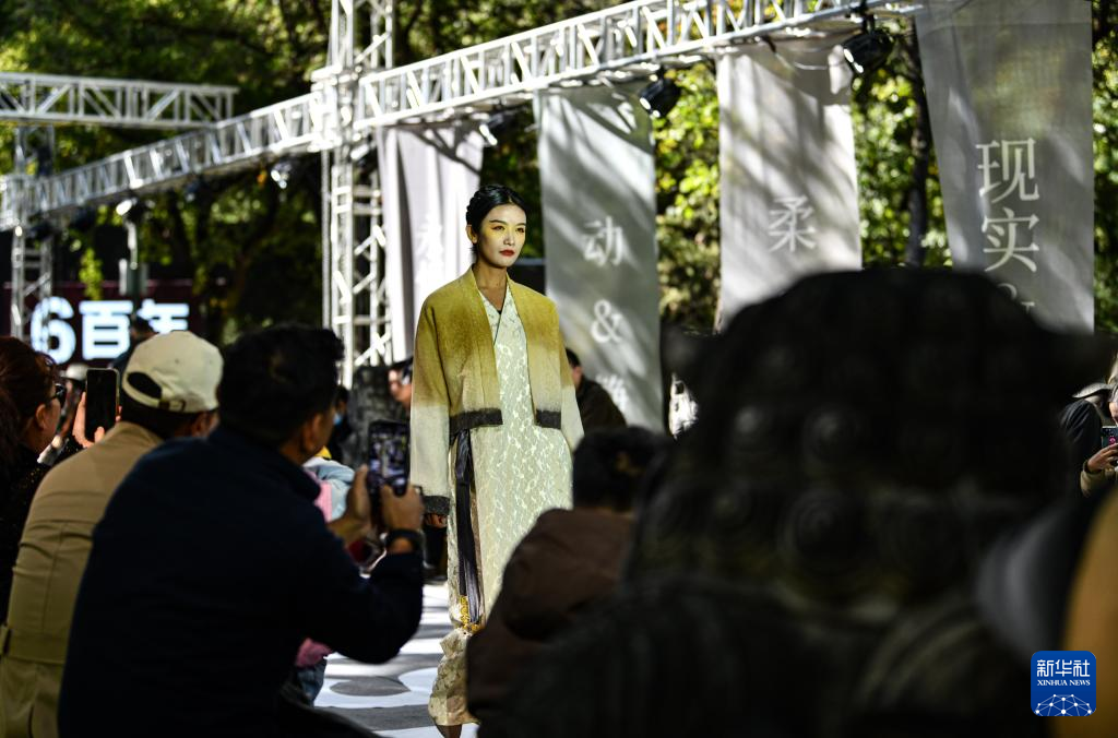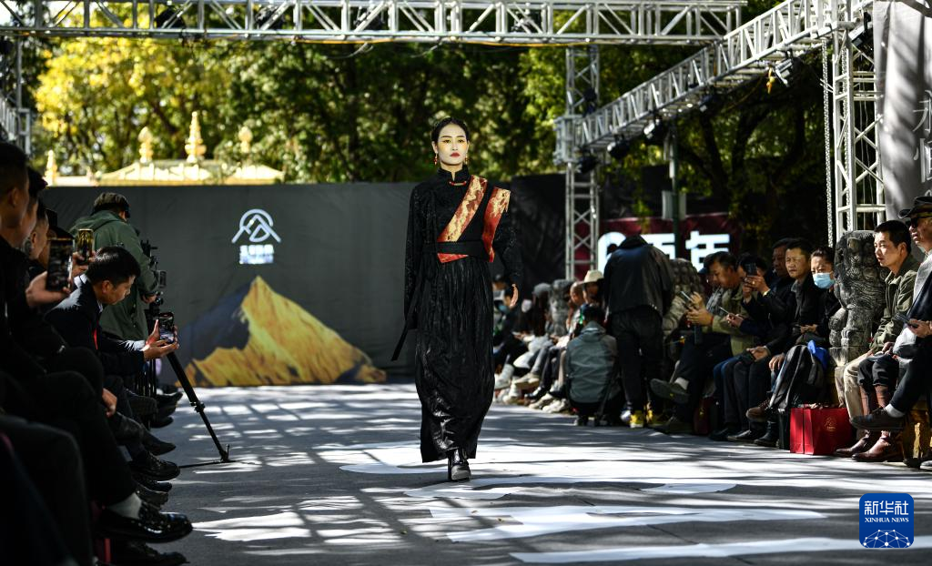 10月21日,模特在時裝發(fā)布會上展示創(chuàng)新藏裝。新華社記者 晉美多吉 攝