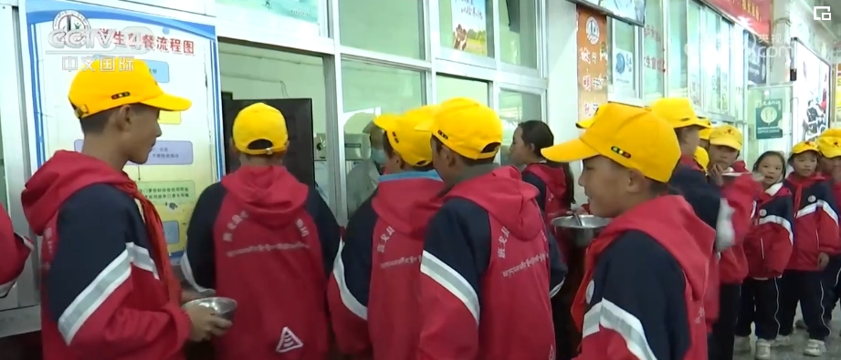 學校的學生絕大部分來自牧區(qū),寄宿制能夠保證更好的教學質量,但并不強制。晚上下課后,離學校近的學生由家長接走,格桑堅才則和小伙伴去食堂吃晚飯。學校還配備生活老師,照顧學生的日常起居、提供日用品。這些費用都由中國從1985年開始,對西藏自治區(qū)實施的教育“三包”政策負擔。包吃、包住、包學習費用,學生家庭不用出一分錢。2023年這一政策的補助金額又再次提高,達到年生均4000—5000元。這所學校的升學率能達到100%。