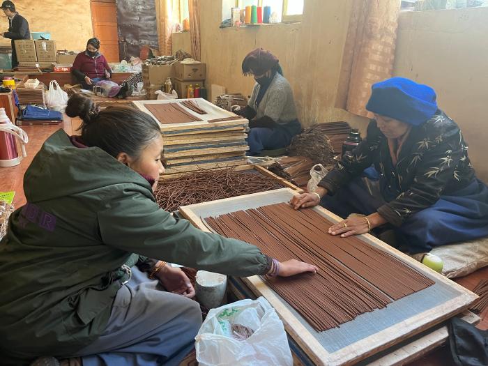 旦增曲扎的公司員工有近30人,大部分為尼木縣當(dāng)?shù)鼐用瘛?jù)旦增曲扎介紹,廠子里的員工在農(nóng)忙時可以請假回家,農(nóng)閑時去廠里做香,既保證了農(nóng)業(yè)生產(chǎn),又能獲得一份穩(wěn)定的收入。