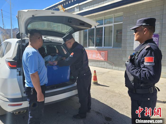 圖為西藏日喀則邊境管理支隊(duì)魯魯邊境檢查站民警對過往車輛及隨車人員進(jìn)行檢查。魯魯邊境檢查站供圖