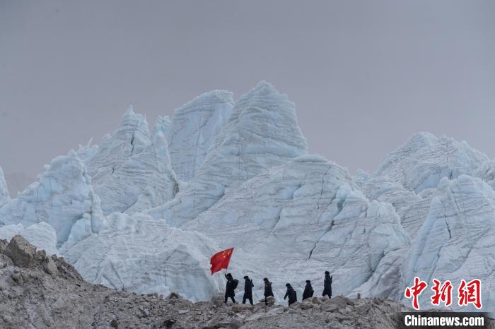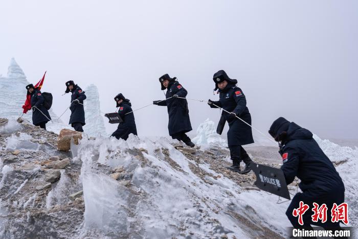 圖為普瑪江塘邊境派出所在海拔5600米的崗布冰川開展邊境巡邏。蔣美靈 攝