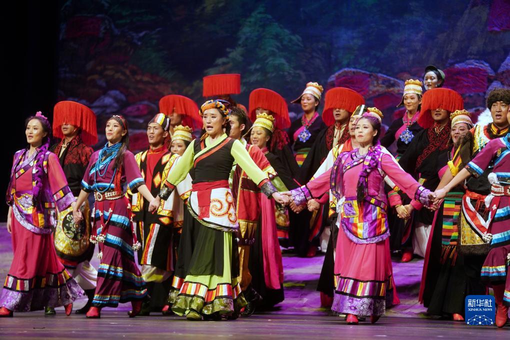 除了民族歌舞劇《天邊格?;ā氛寡萃猓敬巍爸袊?guó)西藏文化周”還包括《康?!舨省鞑匚幕诽卣埂ⅰ把┯蛳憬炛腥A—西藏非遺歌舞進(jìn)校園”交流演出、冬游西藏旅游推介會(huì)等活動(dòng)。