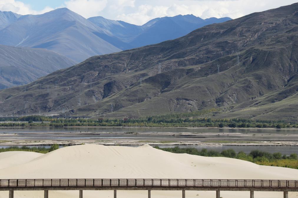 雅魯藏布江沖出中游的尼木峽谷后河道變寬、流速放緩,江水?dāng)y帶的泥沙在貢嘎、扎囊、桑日等縣沉積成沙洲。每到冬春枯水季節(jié)時(shí),寬闊的河床裸露出來,揚(yáng)起的風(fēng)沙形成了一片片沙化地帶。