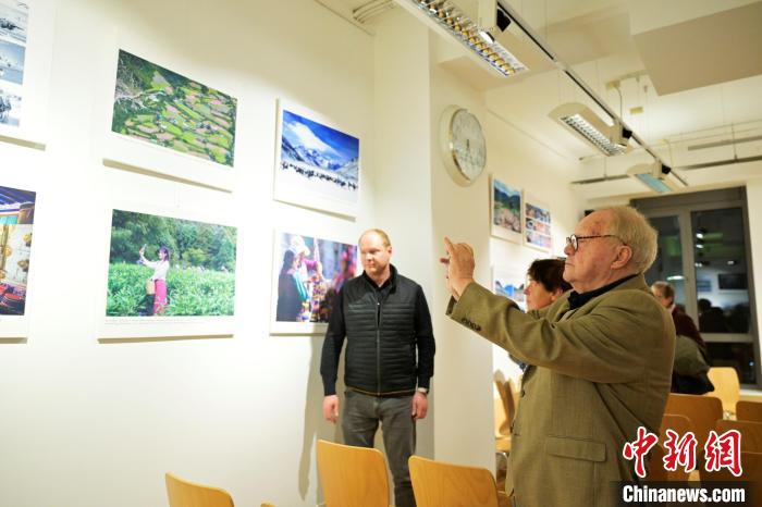 維也納商會(huì)市場(chǎng)部主席馬庫(kù)斯·漢茨(Markus Hanzl)參觀“和美西藏”攝影展。歐洲時(shí)報(bào)記者 周修怡 攝