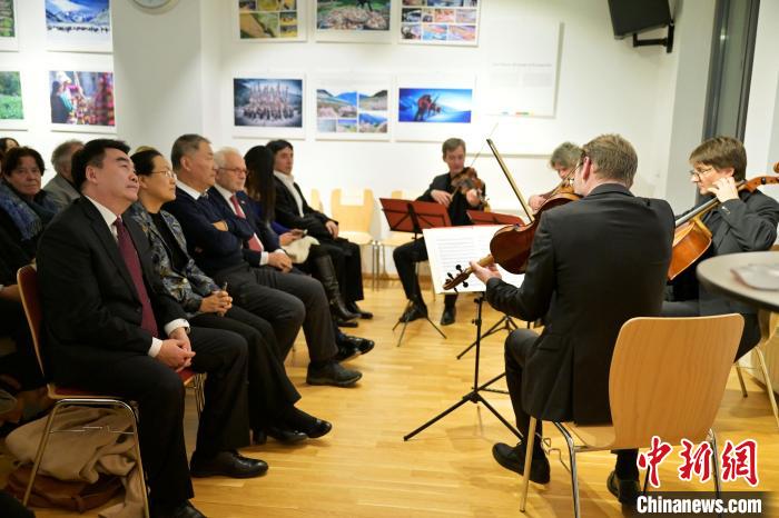 奧地利萊興菲爾德四重奏樂(lè)隊(duì)( Lerchenfeld-Quartett)在“和美西藏”攝影展開(kāi)幕式上演奏小約翰·施特勞斯的《皇帝華爾茲》。歐洲時(shí)報(bào)記者 周修怡 攝