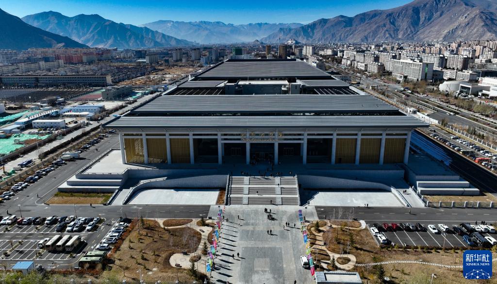 空中俯瞰西藏大劇院(12月15日攝,無人機照片)。新華社記者 晉美多吉 攝