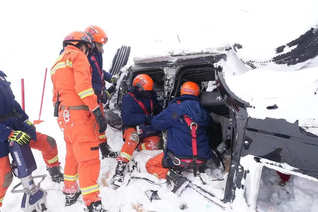 65名隊(duì)員到達(dá)現(xiàn)場(chǎng)時(shí),天已經(jīng)黑透,周?chē)箫L(fēng)呼嘯,數(shù)輛受災(zāi)車(chē)輛被直接埋壓在雪下,救援難度很大,很多隊(duì)員都心里直打顫。