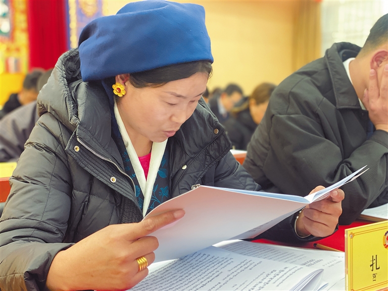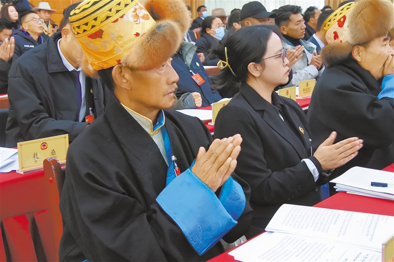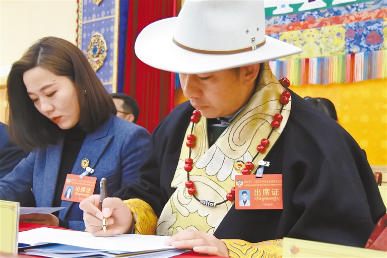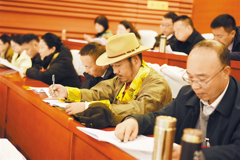 圖為基層委員認(rèn)真聆聽(tīng)政協(xié)拉薩市委員會(huì)工作報(bào)告。