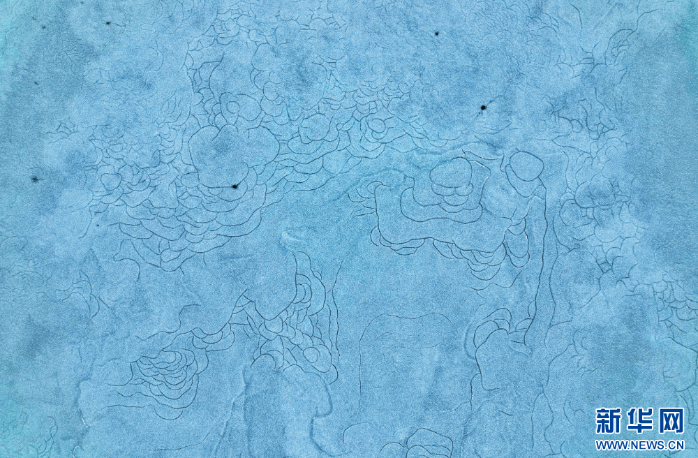 圖為1月3日降雪后扎塘魯錯湖面自然形成的冰紋(無人機(jī)照片)。 新華網(wǎng)發(fā) 姚力 攝