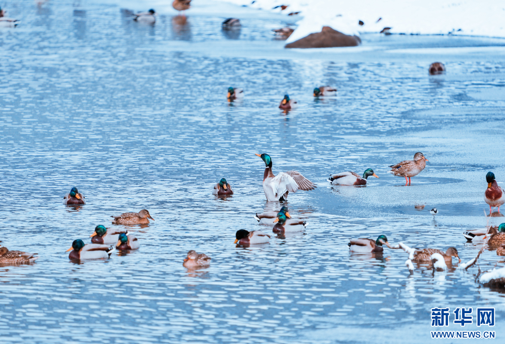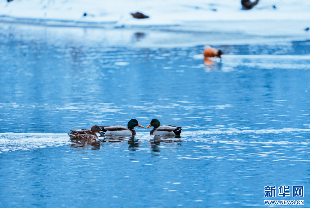 在扎塘魯錯湖面棲息的野鴨(1月3日攝)。新華網(wǎng)發(fā) 姚力 攝