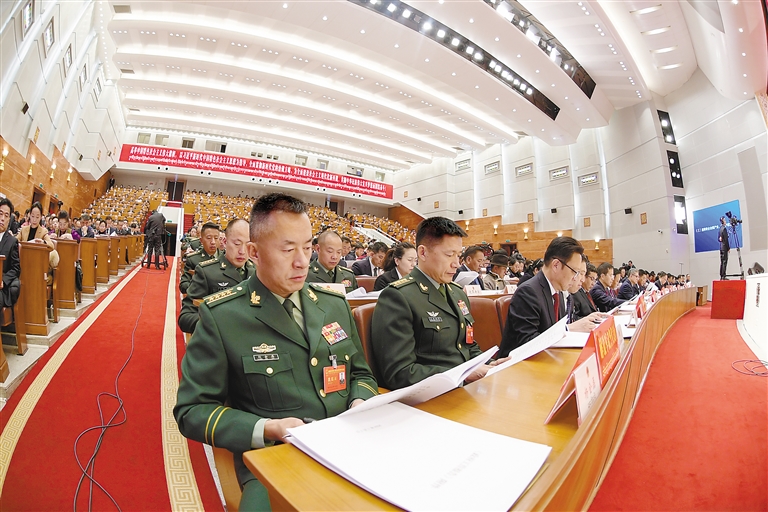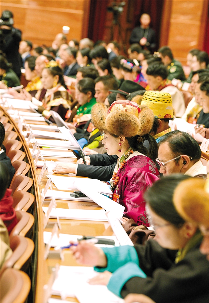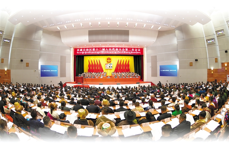 西藏自治區(qū)十二屆人大二次會(huì)議現(xiàn)場(chǎng)。 記者 潘多 攝