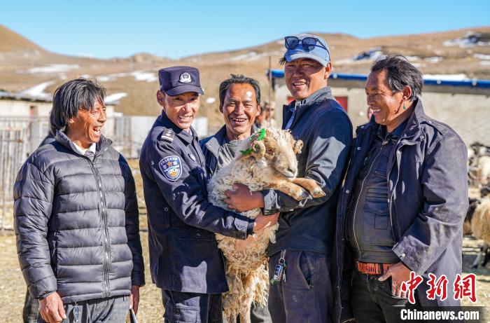 圖為崗巴邊境派出所若木新村警務(wù)室民警巴桑次仁在合作社見(jiàn)證分羊。葉軼 攝