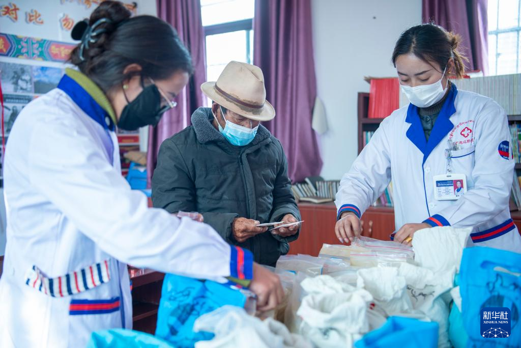 1月27日,拉布村村民在領(lǐng)取免費(fèi)藥品。新華社記者 劉文博 攝