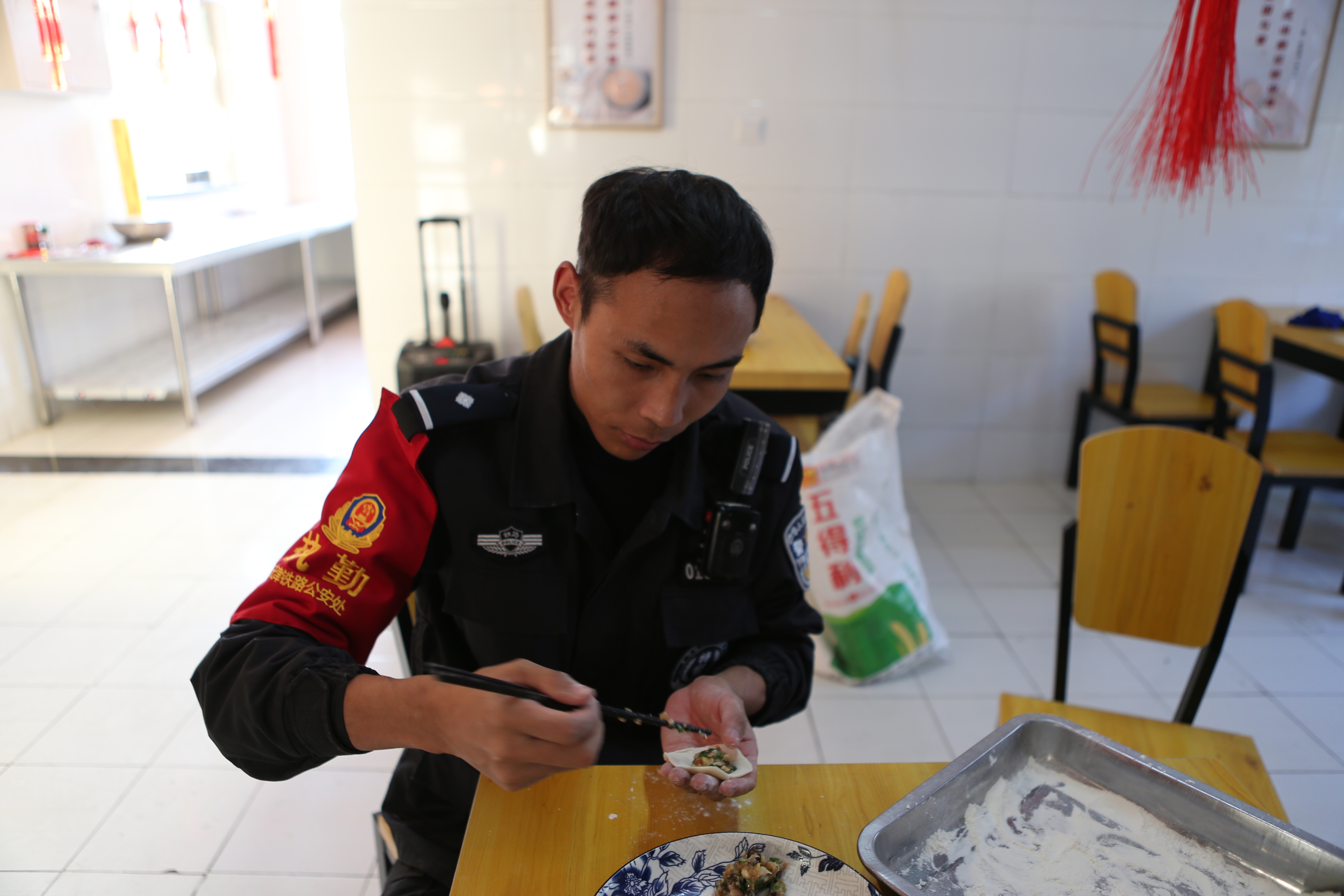 藏語里,警察被稱為“泥朵巴”(音譯)。北京鐵路公安局天津公安處特警支隊有兩名藏族“泥朵巴”,洛桑單巴和旺杰。大年三十除夕夜,他們和同事們一起歡快地包著餃子,洛桑說:“今年的農歷春節(jié)與藏歷春節(jié)恰巧是同一天,我們今天也是過節(jié)啦!”