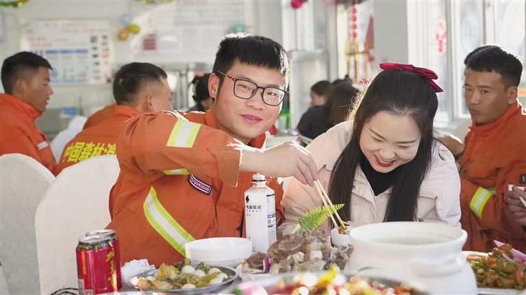 在大隊(duì)里,孫再藏與妻子一起包餃子、貼春聯(lián)、看春晚,和消防員們共同歡度佳節(jié)。除夕夜,孫再藏和妻子手挽著手,在操場(chǎng)上漫步。妻子抬頭看著丈夫,眼中充滿了驕傲和溫柔。她說:“你們過年還挺熱鬧的,好好站崗值班,家里不用擔(dān)心,有我呢。”