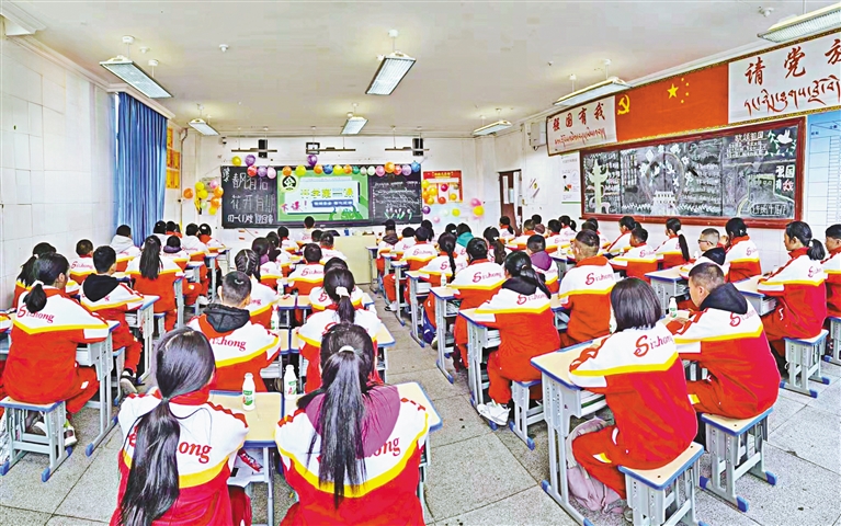 在林芝市第二小學(xué),學(xué)校布置了喜慶的龍年裝飾,教室文化墻裝點一新,老師們分發(fā)起糖果、牛奶。溫暖的“小驚喜”迅速調(diào)動起學(xué)生返校的好心情;波密縣完全小學(xué)利用寒假對所有教室進行了粉刷、維修,對學(xué)生食堂進行了升級改造,干凈、整潔的校園,讓學(xué)生們格外激動……“今天很開心,見到了老師和同學(xué),也見到了更美麗的校園。新的學(xué)期,我要繼續(xù)做好班干部工作,取得更大的進步?!绷种ナ械诙W(xué)學(xué)生索朗次仁信心滿滿地說。