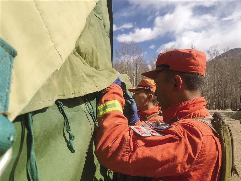 指戰(zhàn)員們?cè)诶毈F(xiàn)場(chǎng)集結(jié)。記者 桑旦歐珠 攝