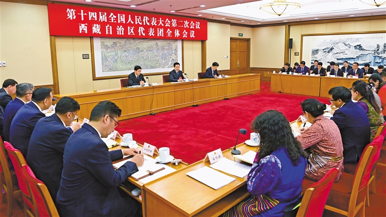 3月6日,西藏代表團舉行全體會議,傳達學習習近平總書記在參加十四屆全國人大二次會議江蘇代表團審議時的重要講話精神,繼續(xù)審議政府工作報告,審查計劃報告和草案、預算報告和草案。