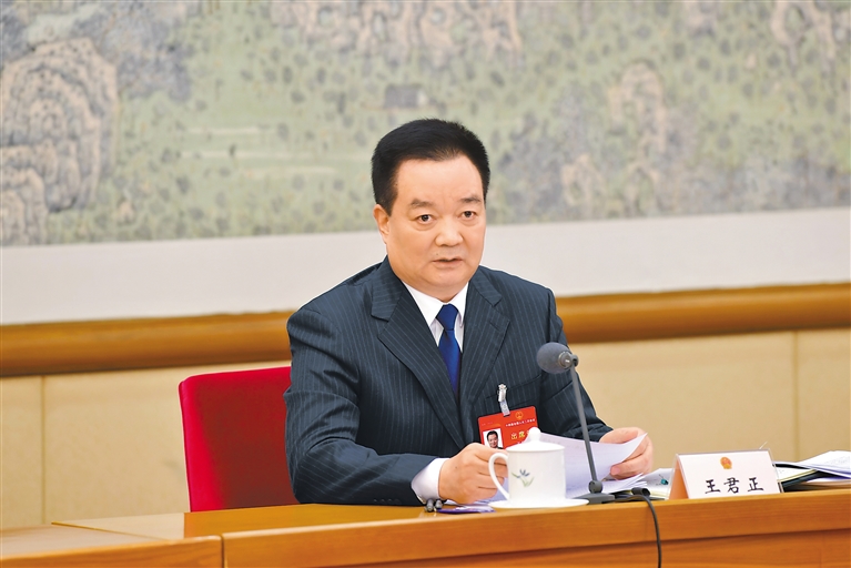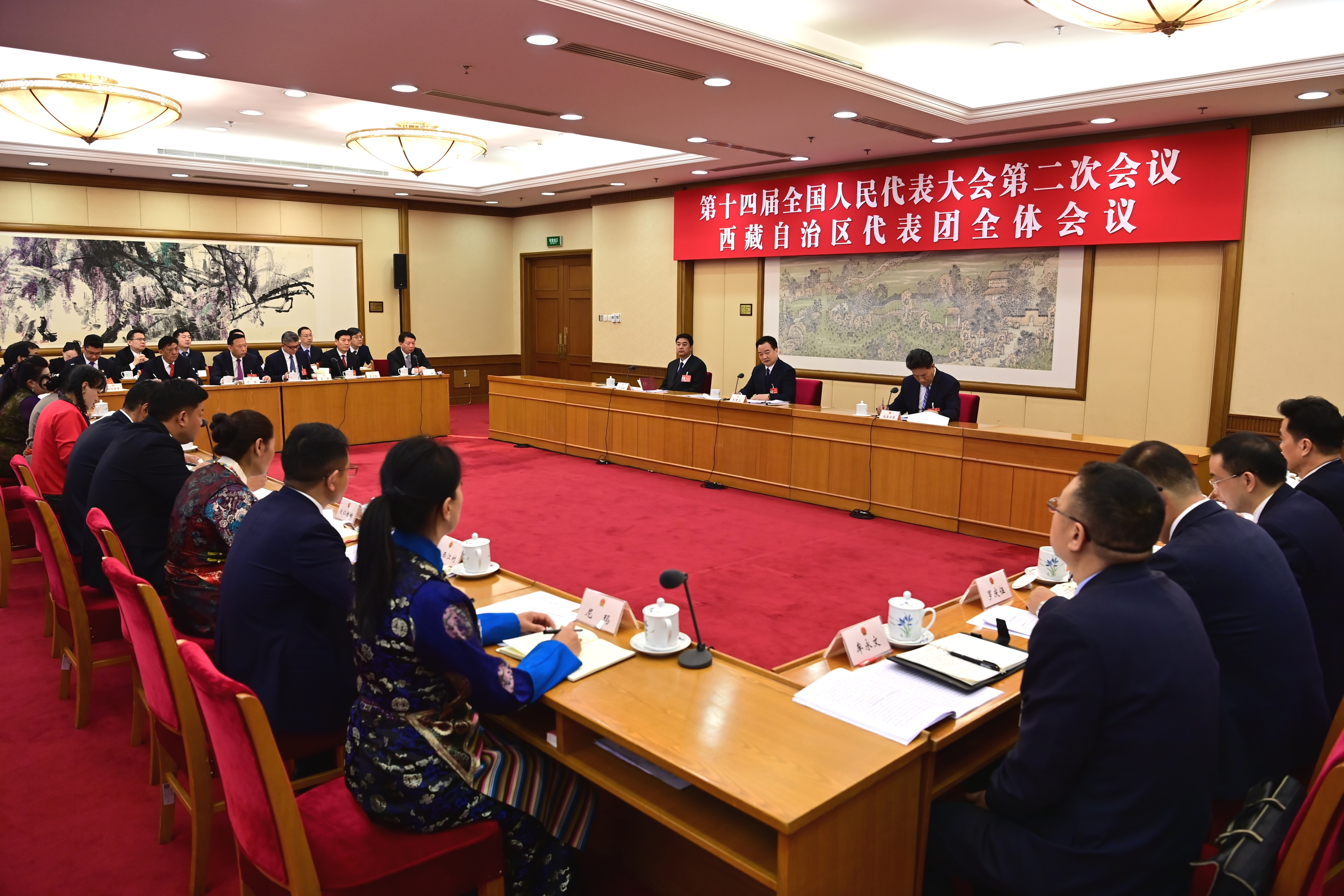 西藏代表團審議政府工作報告,西藏代表團團長、自治區(qū)黨委書記王君正講話。記者 旦增西旦 攝