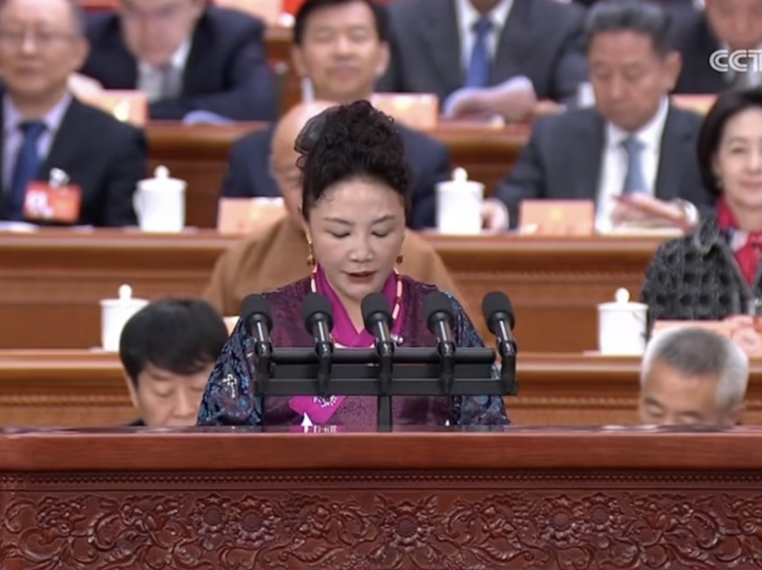3月9日上午,全國政協(xié)十四屆二次會議在北京人民大會堂舉行第三次全體會議。這是住藏全國政協(xié)委員、西藏眾源建材集團(tuán)有限公司董事長卓嘎作大會發(fā)言。
