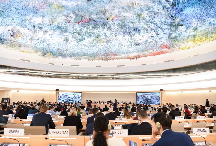 這是1月23日在瑞士日內(nèi)瓦拍攝的聯(lián)合國人權(quán)理事會第四輪國別人權(quán)審議現(xiàn)場。新華社記者連漪攝