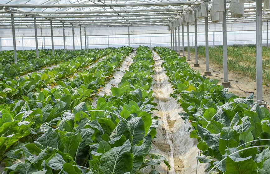 戈壁設(shè)施農(nóng)業(yè),不是簡(jiǎn)單地在戈壁灘上開墾土地發(fā)展農(nóng)業(yè),而是要將光、熱、水、肥、土壤等一系列生產(chǎn)要素進(jìn)行合理配置。綠之源的規(guī)劃建設(shè),走出了一條節(jié)地、節(jié)水、高效循環(huán)的戈壁生態(tài)農(nóng)業(yè)發(fā)展路子。節(jié)地,充分利用了閑置的戈壁荒灘資源,不占耕地,有效解決了菜糧爭(zhēng)地矛盾;節(jié)水,日光溫室作物生產(chǎn),全部配套了膜下滴灌技術(shù),使有限的水資源得到了高效利用;高效循環(huán),溫室采取“套種”種植模式,讓土地不空茬,連作多種作物,有效提高溫室利用率,實(shí)現(xiàn)“全年種植、全年采收”,改善了土壤沙化環(huán)境,提升了土壤地力,更是提高了蔬菜品質(zhì)。