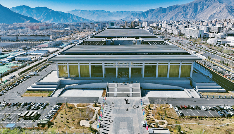 2023年12月15日,西藏大劇院開臺(tái)演出活動(dòng)舉行,西藏文化新地標(biāo)西藏大劇院正式啟用。圖為空中俯瞰西藏大劇院(無人機(jī)照片)。 新華社記者 晉美多吉/攝
