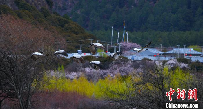 3月30日,在西藏林芝市巴宜區(qū)更章門巴民族鄉(xiāng)境內(nèi),黑頸鶴在村莊里、盛開的桃花前、雪山下翩翩起舞,形成一幅絕美的自然畫卷。黑頸鶴,被譽(yù)為“鳥類大熊貓”,是國家一級保護(hù)野生動物,也是世界上唯一在高原地區(qū)生長和繁殖的鶴類。近年來,西藏不斷加大黑頸鶴生存環(huán)境保護(hù)力度。據(jù)2022年冬季越冬黑頸鶴種群數(shù)量調(diào)查顯示,在西藏越冬的黑頸鶴種群數(shù)量達(dá)11175只,種群數(shù)量持續(xù)增長,并在西藏全區(qū)均有分布,其瀕危等級也從“易?!苯禐椤敖!薄T诹种?,黑頸鶴在桃花與雪山間自由翱翔,展現(xiàn)了人與自然和諧共處的美好場景。