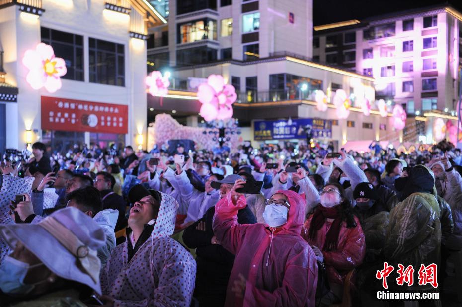 開幕式當(dāng)晚上演了文藝表演和無人機(jī)表演,16個(gè)節(jié)目為觀眾獻(xiàn)上了文藝盛宴,既有民族歌舞,也有援藏省歌舞團(tuán)帶來的節(jié)目。圖為開幕式上的觀眾正在看無人機(jī)表演。貢嘎來松 攝