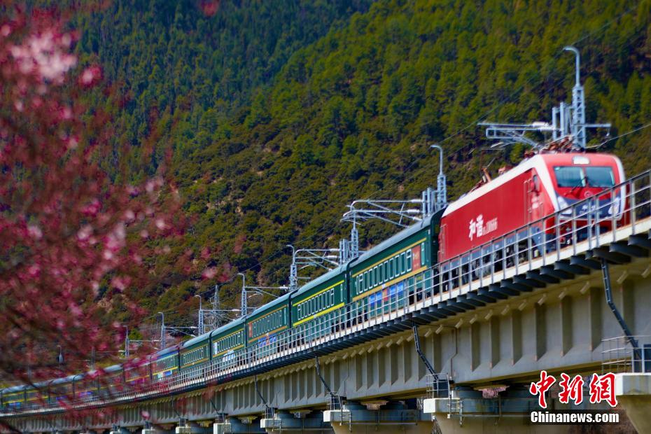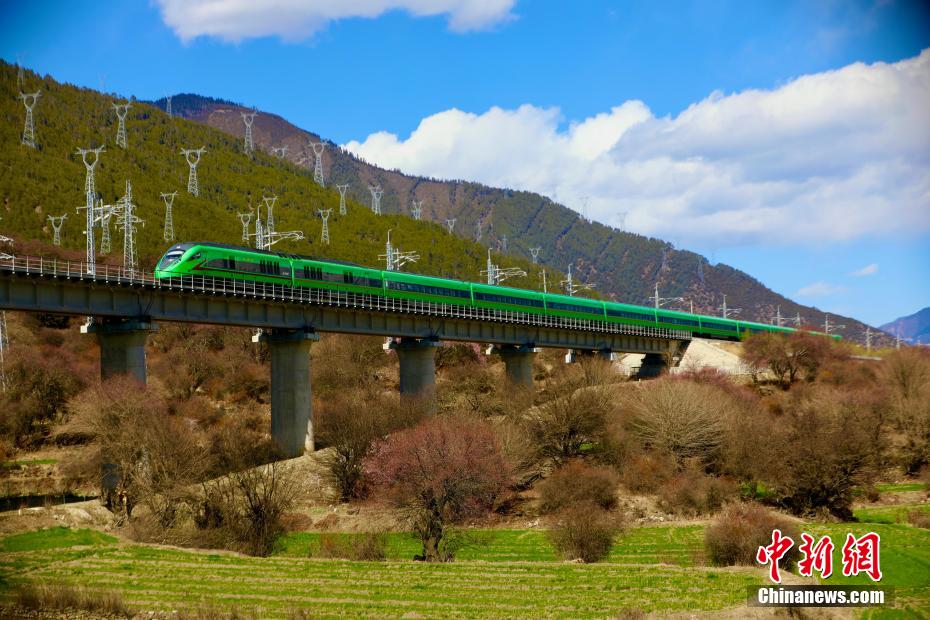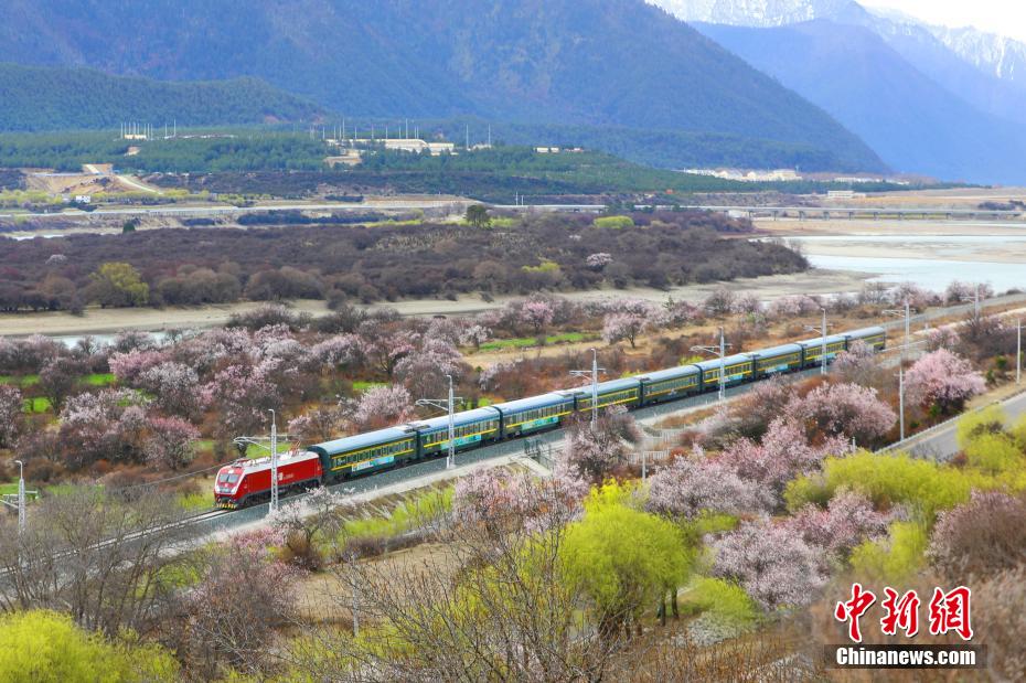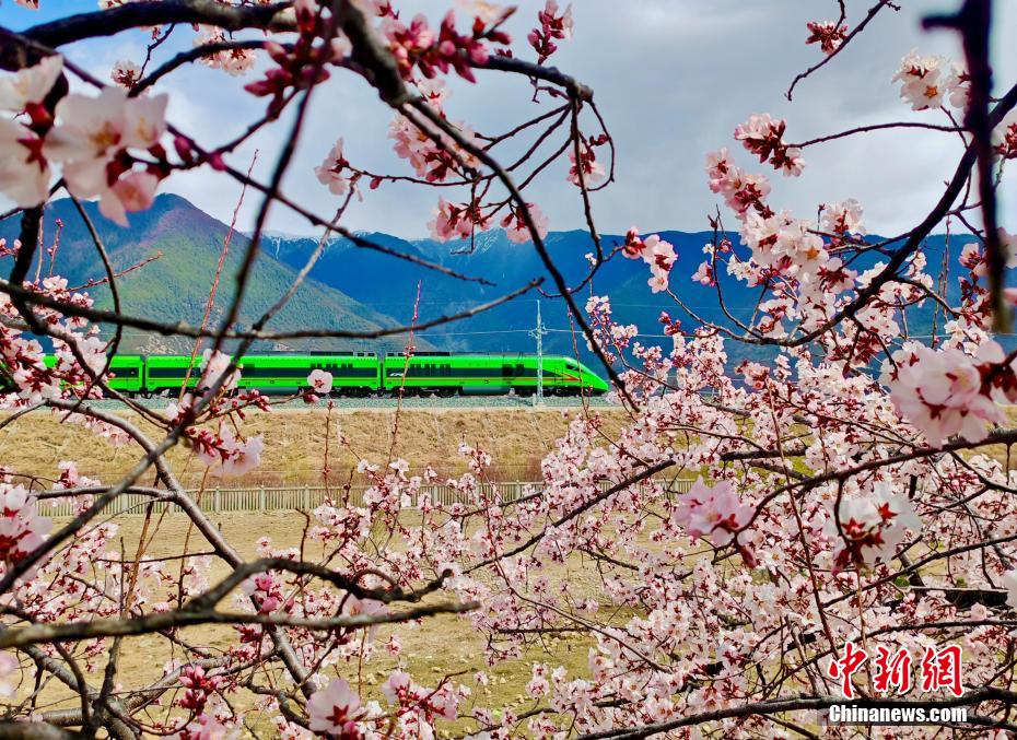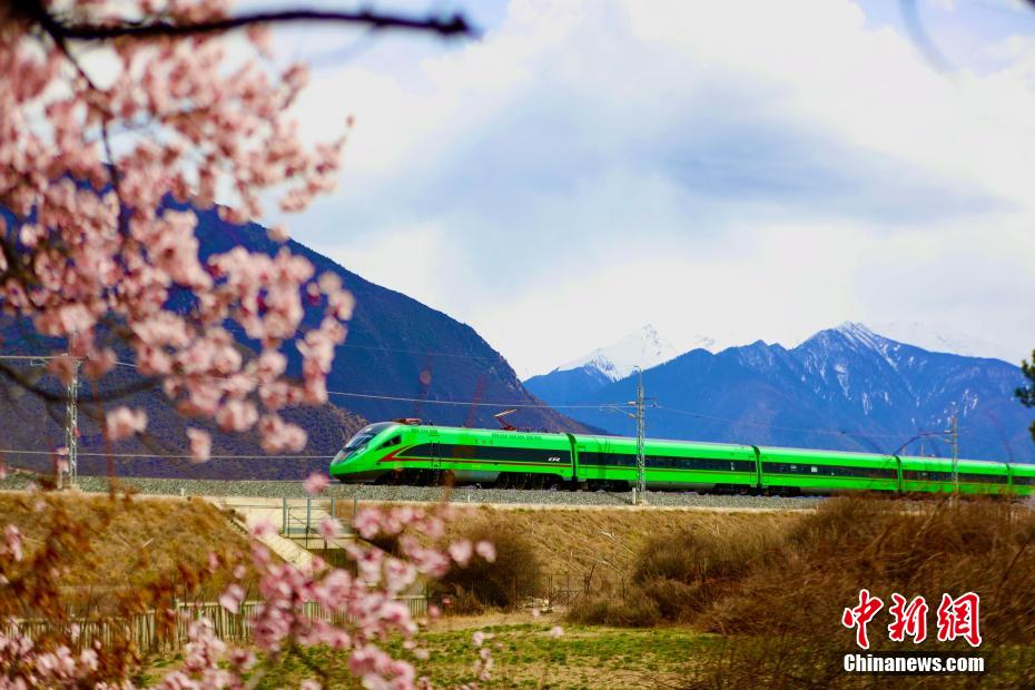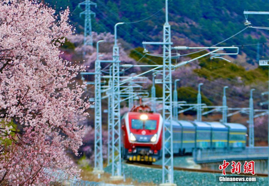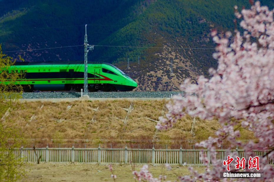 被譽(yù)為新“天路”的拉林鐵路,是中國(guó)首條高原電氣化鐵路,于2021年6月25日開通運(yùn)營(yíng),結(jié)束了西藏東南地區(qū)不通鐵路的歷史。圖為拉林鐵路沿線桃花盛開,與飛馳而過(guò)的動(dòng)車構(gòu)成別樣風(fēng)景圖。馬生明 攝