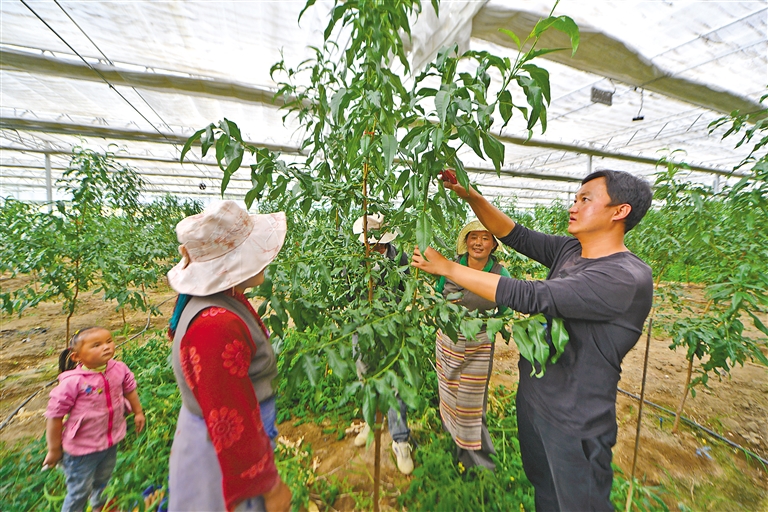 “以前,一家人靠種植青稞為生,由于收入上不去,日子過得并不富?!,F(xiàn)在好了,自從承包蔬菜大棚搞經(jīng)濟(jì)作物以來,收入一年比一年好。我承包的兩座蔬菜大棚主要種植西紅柿和黃瓜,從選種到收獲,鄉(xiāng)里的‘點(diǎn)對(duì)點(diǎn)’干部都會(huì)全程指導(dǎo),手把手教我種植技術(shù),年收入有10多萬元?!甭櫽翊宕迕衿詹即稳矢嬖V記者,隨著收入增加,一家人的生活質(zhì)量也上去了,他對(duì)自己走靠搞經(jīng)濟(jì)作物發(fā)家致富這條路信心十足。