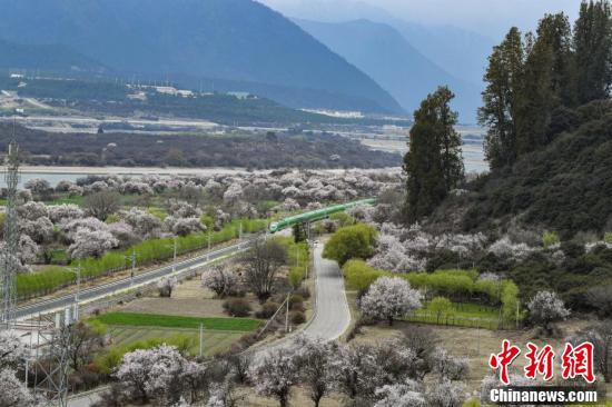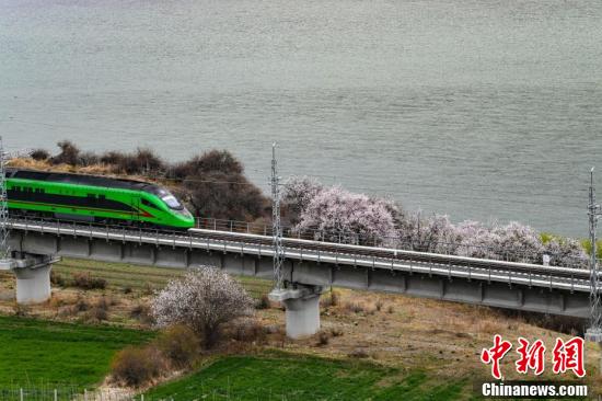 復(fù)興號動車組不僅是一種便捷的交通方式,更成為了一種獨特的旅游體驗,讓游客能夠近距離欣賞到西藏林芝春季獨特的自然美景。圖為穿梭在桃花林中的拉林鐵路高原復(fù)興號。