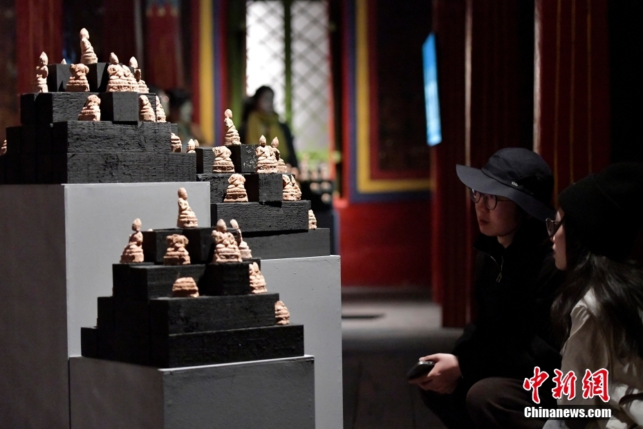4月13日下午,“聚沙為塔——吉崩崗拉康文物回歸特別展覽”在拉薩吉本崗藝術(shù)中心開(kāi)幕,以近期回歸古建的3000余件文物為主要內(nèi)容,梳理了古建歷史與文物源流。圖為觀眾正在欣賞展覽中的擦擦(脫模泥塑造像)。
