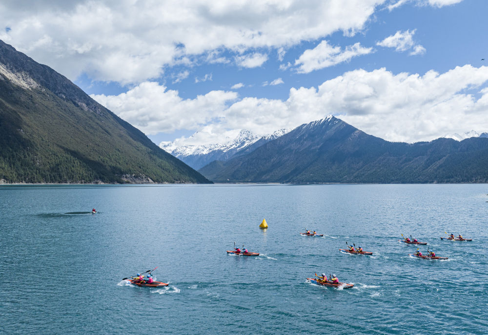 在西藏工布江達縣巴松措國家森林公園激情開“劃”