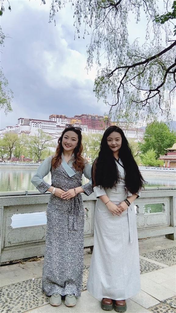 八廓街內(nèi),布宮圍墻邊,帕崩崗桃花樹下……游走在拉薩各個景點(diǎn),你會發(fā)現(xiàn)眾多身著藏裝的漂亮姑娘,她們大多是來自全國各地的游客。藏裝布料精美、顏色亮麗,樣式傳統(tǒng)或新穎,配上頭飾耳飾,衣香鬢影、搖曳生姿。她們穿著藏裝賞景、拍照留念,亦成為別人眼中的風(fēng)景。