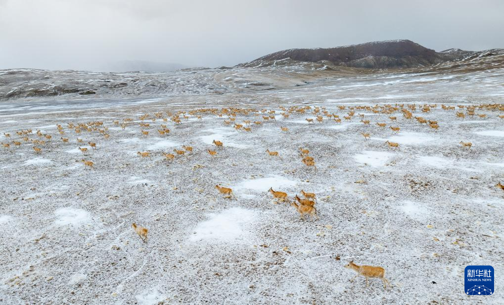藏羚羊向產(chǎn)羔地遷徙(5月8日攝)。新華社記者 丁增尼達(dá) 攝