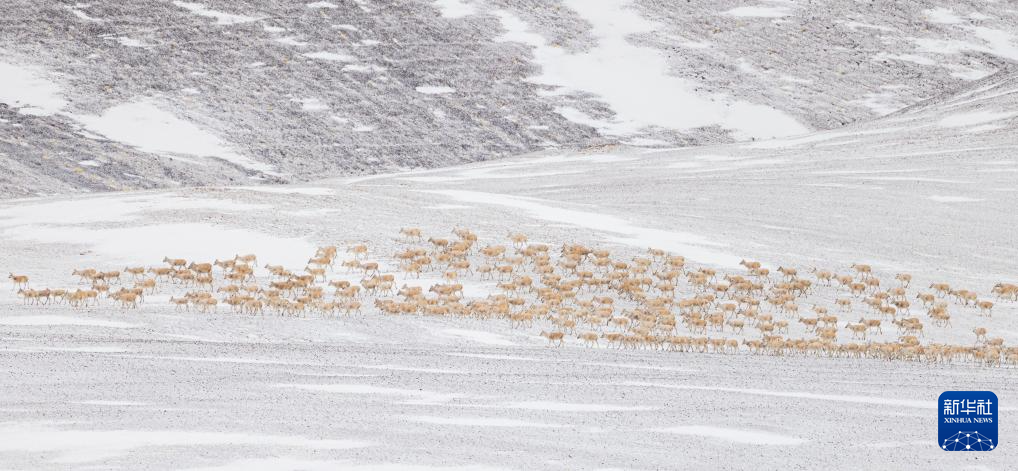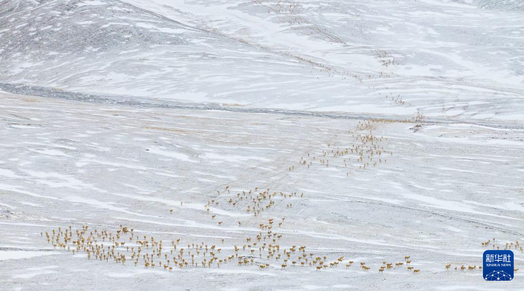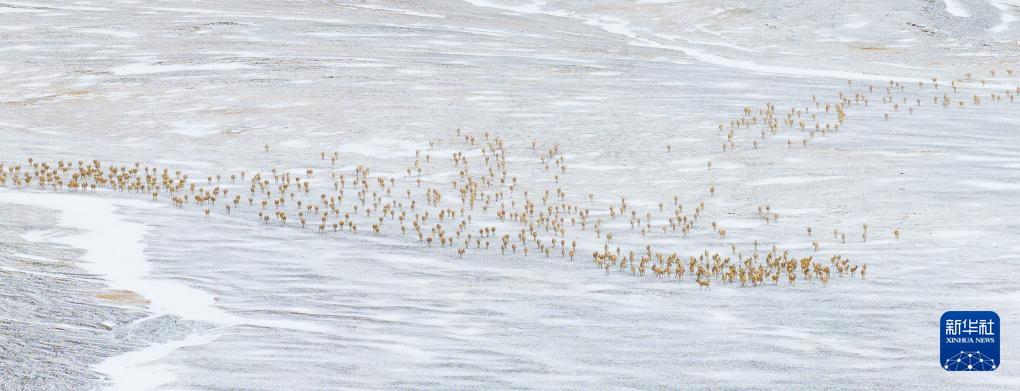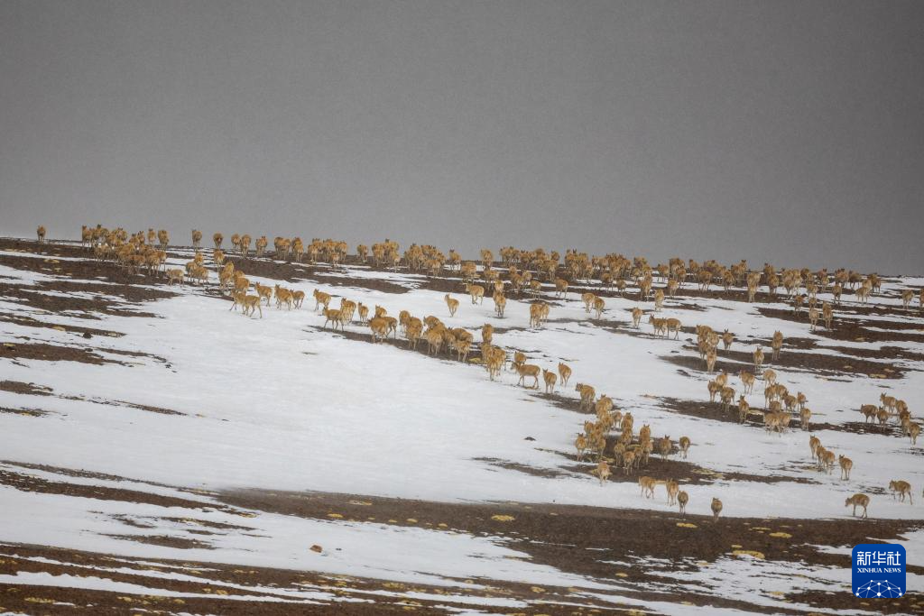 近日,在位于西藏自治區(qū)北部的羌塘國家級(jí)自然保護(hù)區(qū),大群懷孕的雌性藏羚羊開始集結(jié)成群,向習(xí)慣產(chǎn)羔地遷徙。
