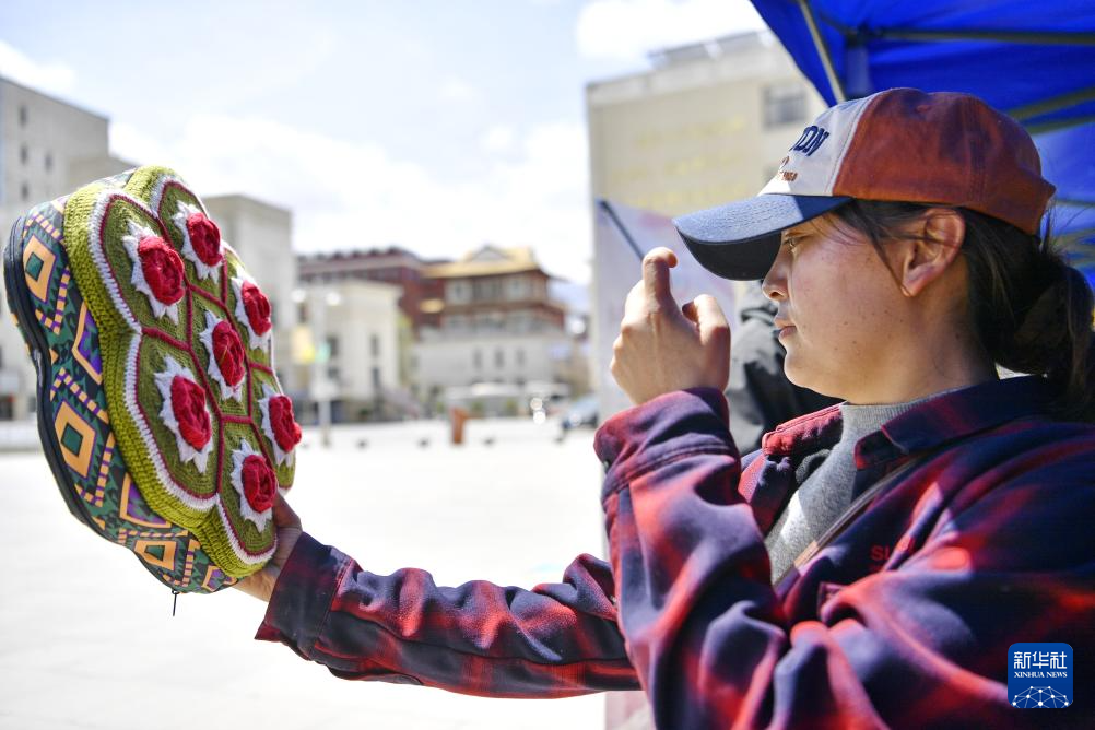 5月12日,在西藏職業(yè)技術(shù)學(xué)院職業(yè)教育活動周啟動儀式暨比如縣非物質(zhì)文化遺產(chǎn)進(jìn)校園活動上,一名消費(fèi)者在挑選比如縣的特色旅游產(chǎn)品。新華社記者 張汝鋒 攝