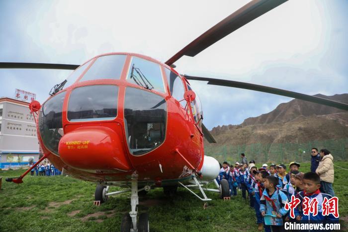 昌都市第二小學(xué)學(xué)生參觀救援直升機。昌都市森林消防支隊 供圖